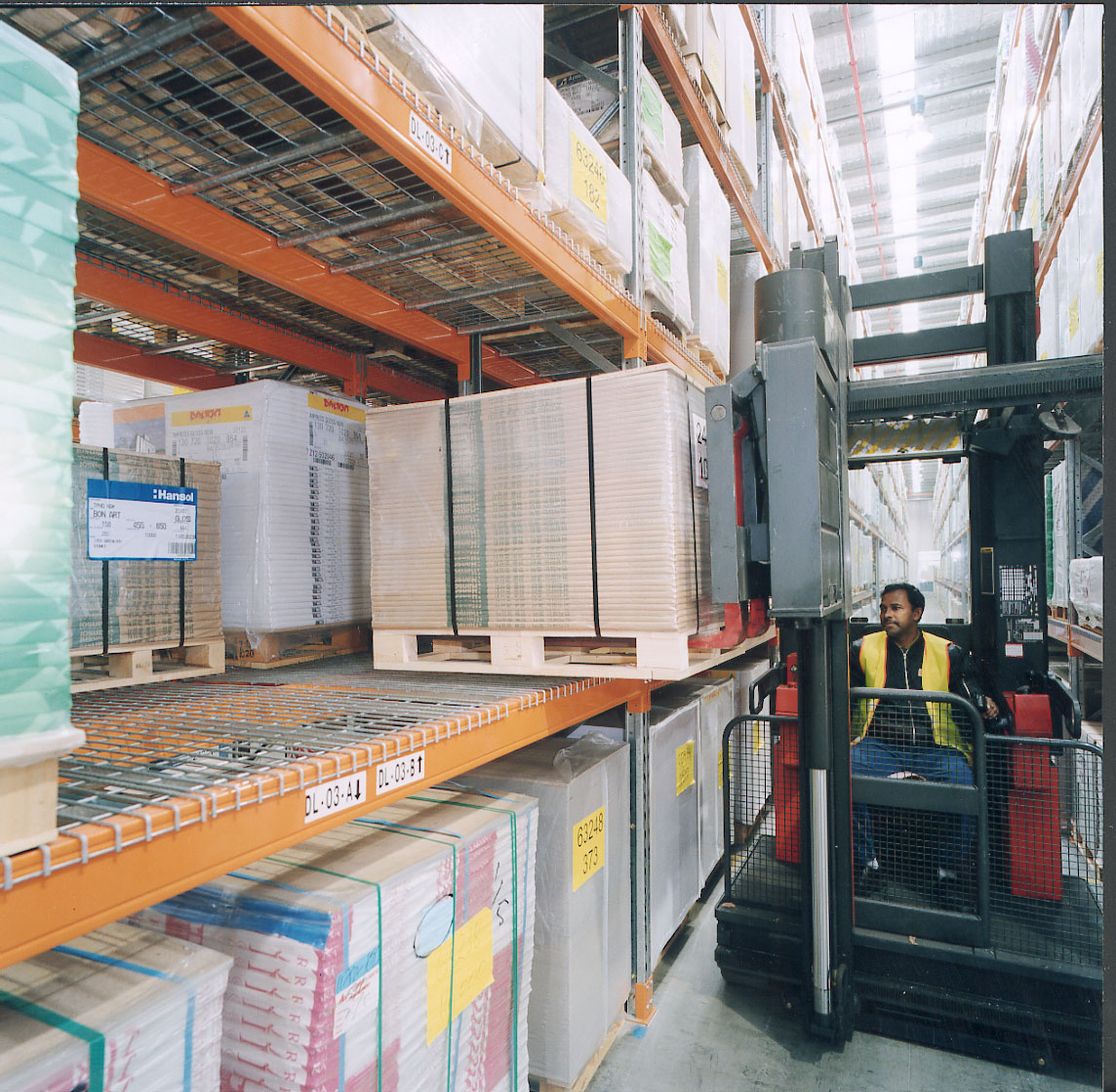 • Minimises aisle width and increases net area utilisation