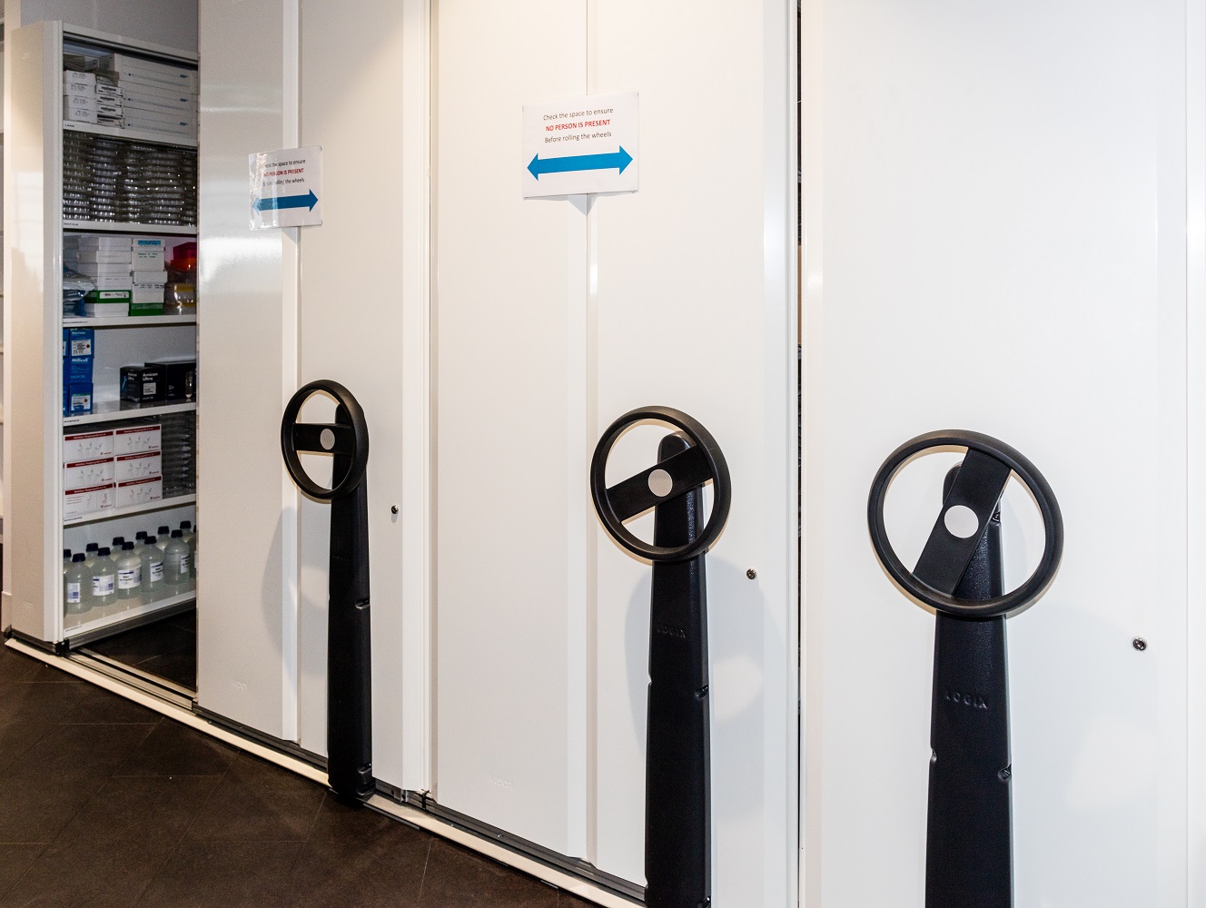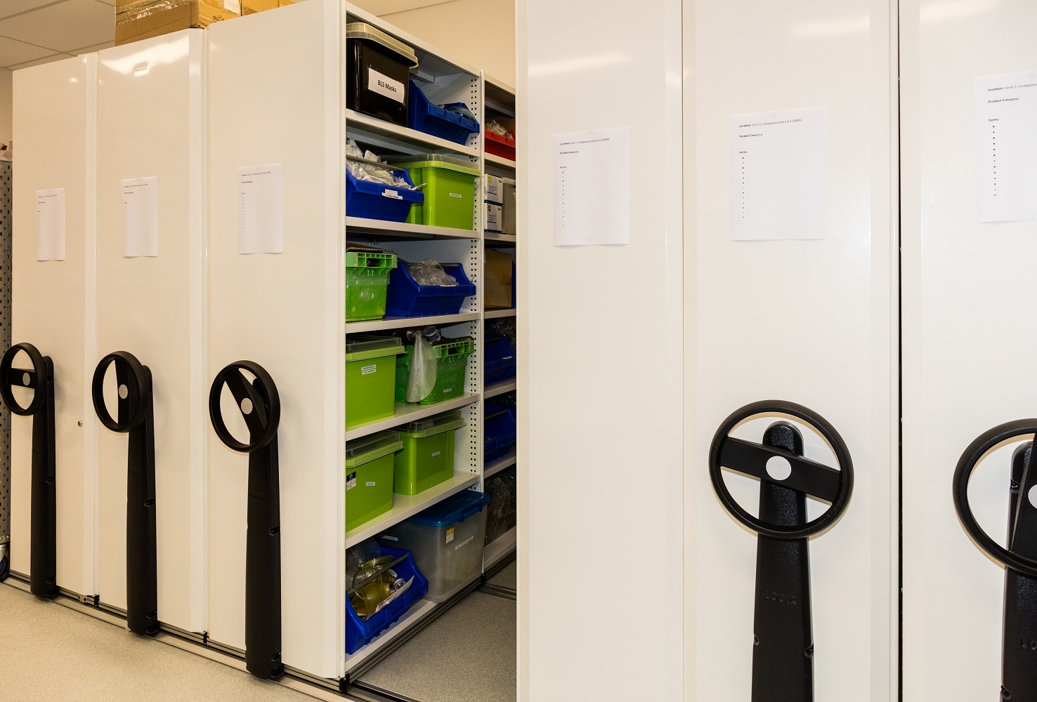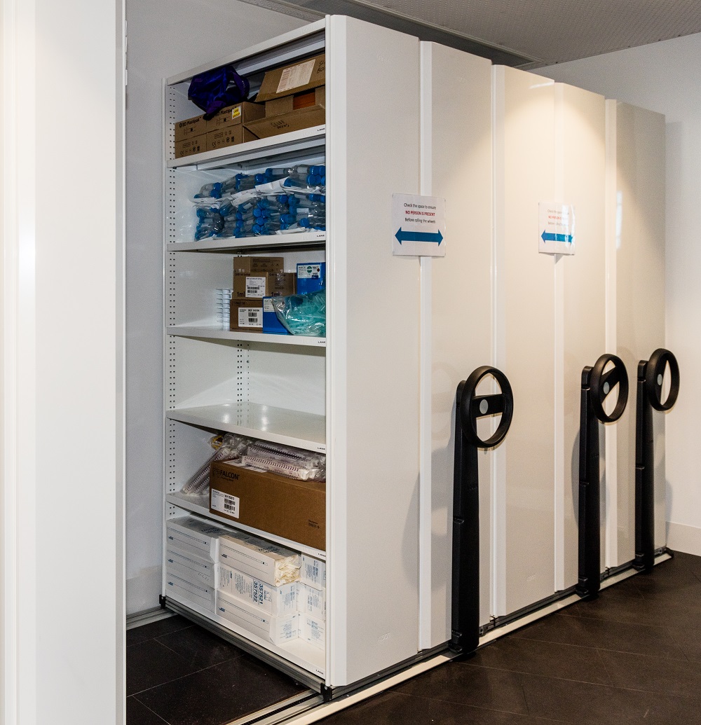 This high capacity system has unparalleled speed and ease of access. It is ergonomically designed and provides maximum storage capacity in a minimum amount of space. Used in medium to heavy duty applications; our unique patented drive system ensures effortless movement of the shelving mobiles, making sure you are ‘Work Safe’ complaint. The stylish LOGIX® handwheel ensures ease of operation allowing quick, easy and safe access to stored items. With its super strong and rigid design, LOGIX Safe T Drive® is a versatile and highly configurable storage solution; providing enhanced mobility, maximising valuable floor space and consolidating storage.