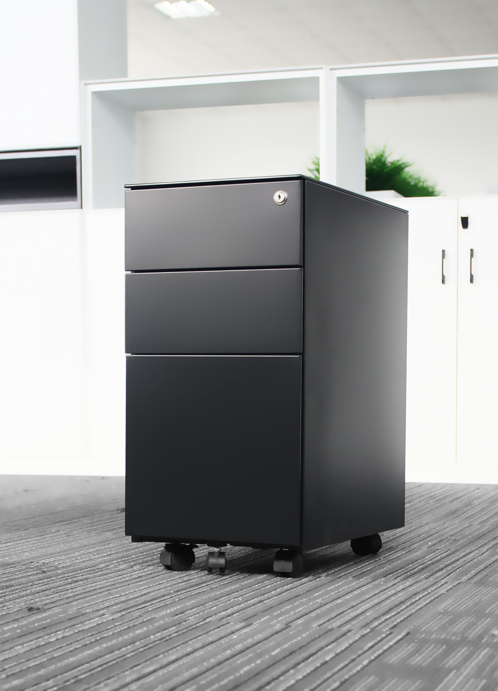 Steelco Slimline Mobile Pedestals are the least intrusive mobile pedestal, with a width of only 300mm. With the evolution of technology, in a modern office environment, less filing space is required. The Slimline Mobile Pedestal has adapted to this changing world by reducing the pedestals footprint, allowing efficient file and stationary storage at small workstations and in tight spaces. Designed for the modern office with a sleek and sophisticated appearance and available in three standard colours, the pedestal features lockable front castors to secure the unit in place as well as a fifth castor wheel for added stability.