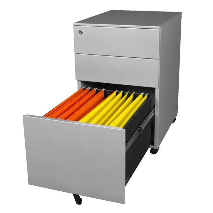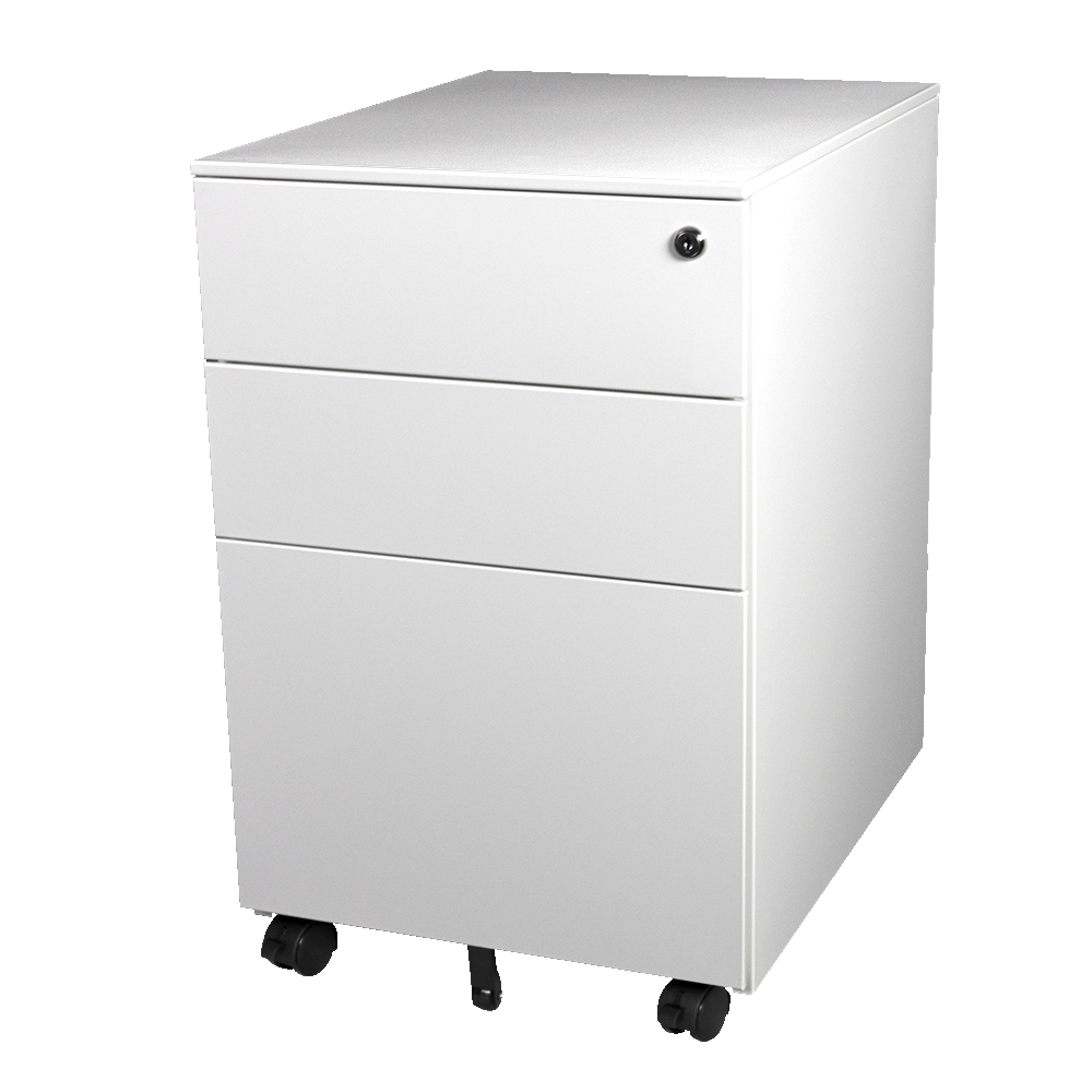 Steelco Trimline Mobile Pedestals are modern, and slightly smaller and more dynamic than the average mobile pedestal. Designed to look stylish under any desk, all the while taking up less space and yet still providing plenty of storage space. They are ideal for storing files, stationary and other office items. The pedestal features lockable front castors to secure the unit in place as well as a fifth castor wheel for added stability.